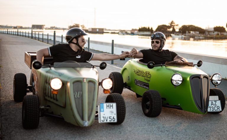 Descobre uma nova experiência de condução: com os nossos hot rods podes experimentar as estradas de Aveiro numa mistura de Fórmula 1 e Super Mario Kart. Sente a aceleração e as forças centrífugas nas curvas - os nossos hot rods não têm direção assistida, por isso continuam a ser carros "reais" em que experimentas a estrada 1:1.